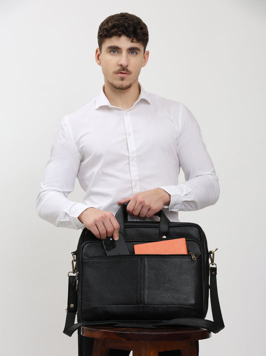 PrestigeTote Real Leather Executive Bag -Black
