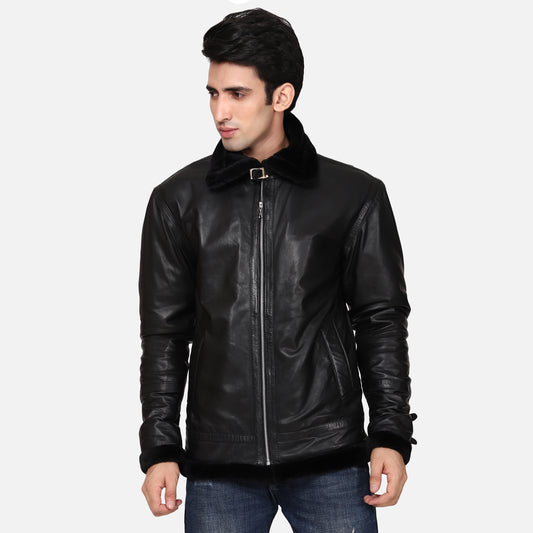Classic Black Leather Jacket :- Charmshilp