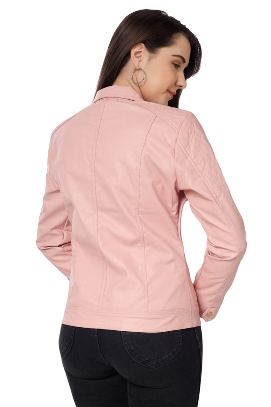 Women's Biker Jacket In Genuine Faux Leather :- Charmshilp