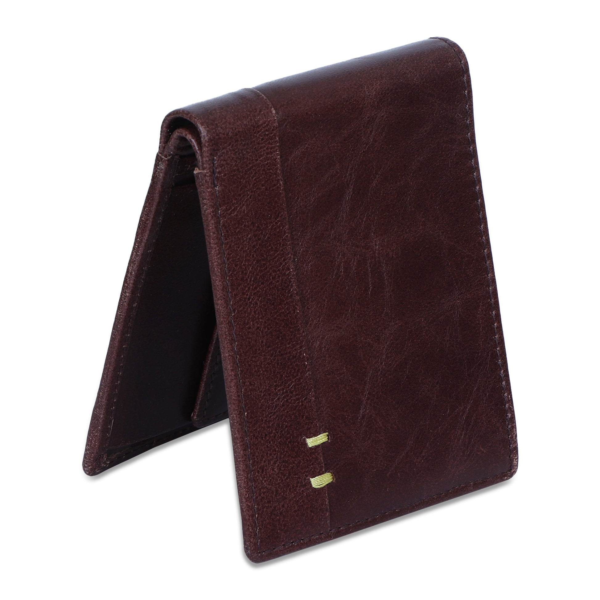 This is a classic Bifold wallet from Charmshilp. The multiple compartments help keep everything you need organized and secure while looking chic and sophisticated. Hand stitched, dyed and aged to last a lifetime this classic wallet will show your style every time you pull it out. It features multiple credit card slots, two compartments for cash and one coin pocket. This wallet has been made out of top grain buffalo leather and it's a natural thing where color variation is never under control.