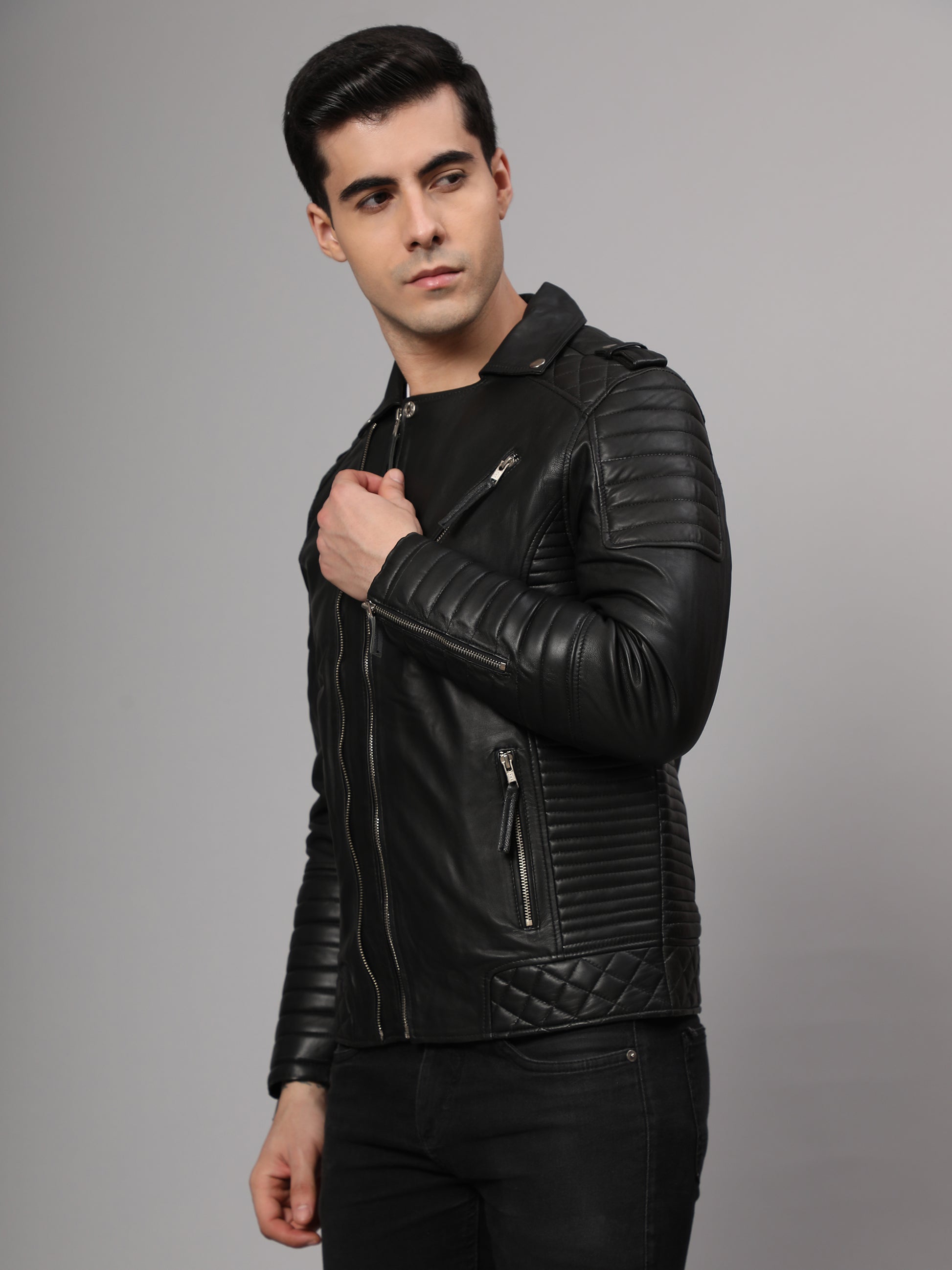 Introducing the Charmshilp Men's Biker Leather Jacket, handcrafted from 100% high quality real sheepskin leather. This jacket is designed to offer both durability and style for the modern biker. The luxurious texture of the leather is coupled with meticulous attention to detail in the stitching and hardware, making this jacket a timeless addition to any wardrobe. Whether you're hitting the open road or heading out for a night on the town, the Charmshilp Men's Biker Leather Jacket is the perfect combination of rugged and refined. Make a bold statement with this iconic piece that.