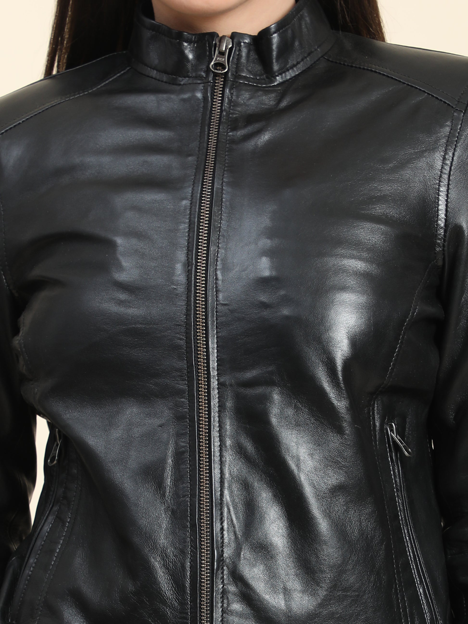 Smooth Sheepskin leather with a fine sheen and a collarless neckline that gives this short jacket its signature look. Princess seams and a tapered waist create a flattering shape that’s finished with hand pockets and polyester lining, and it fastens with a zip front closure. Thank you for choosing Charmshilp wear. Leather is a strong, flexible and durable material obtained from the tanning, or chemical treatment, of animal skins and hides to prevent decay.