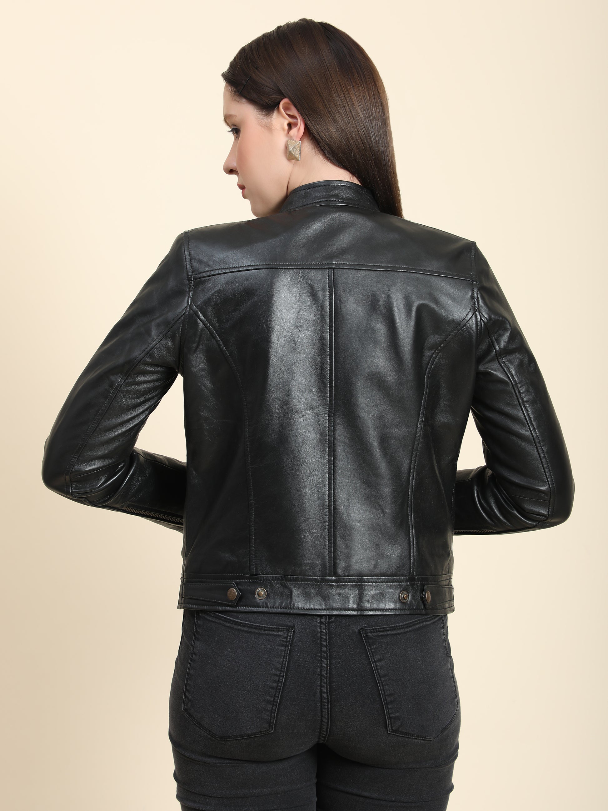 Full Sleeve Self Designs Women Leather Jacket For Autumn and Winters